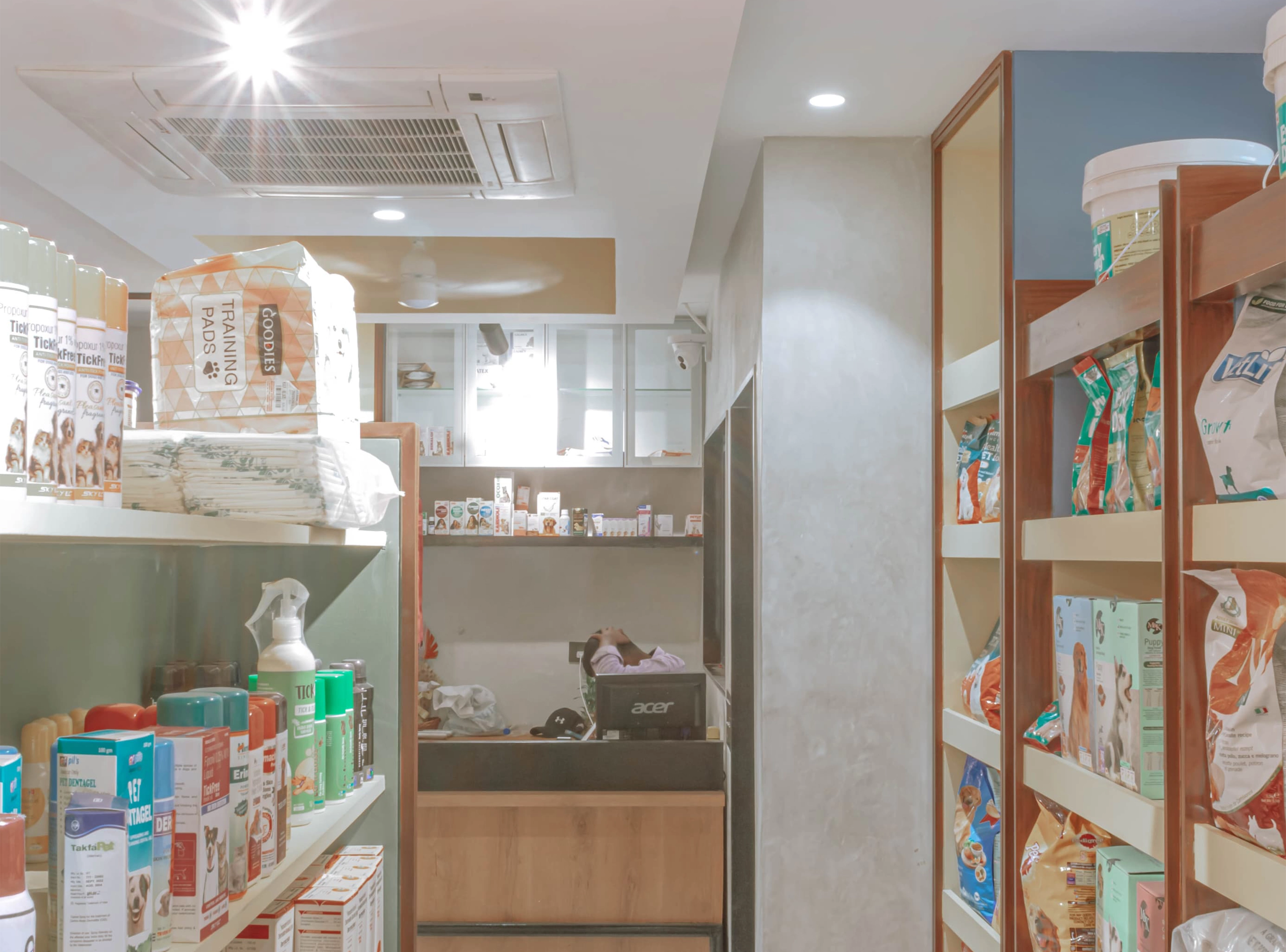 We worked out Compact but Comfortable spaces for the Pet Supply Area, Reception with Pharmacy, a Doctor’s Cabin, a Consultation Room with 2 Tables for the Fur buddies, a treatment room for the small four-legged Companions, the Spa, the Operation theatre and the Medical Lab.