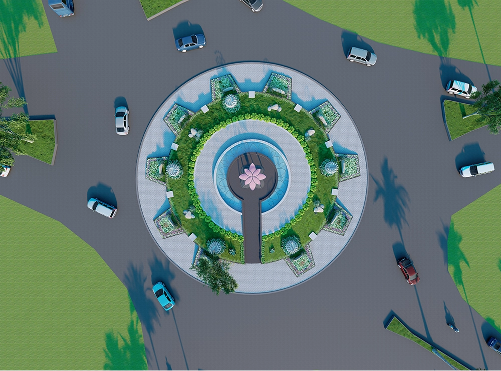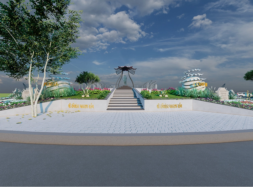 Re-beautifying for the Panchvati Circle with Freedom Fighter Shri Ravishankar Maharaj at the Centre surrounded by a beautiful water Fountain. Surrounding area Stone carvings with a positive Message and beautiful landscape.