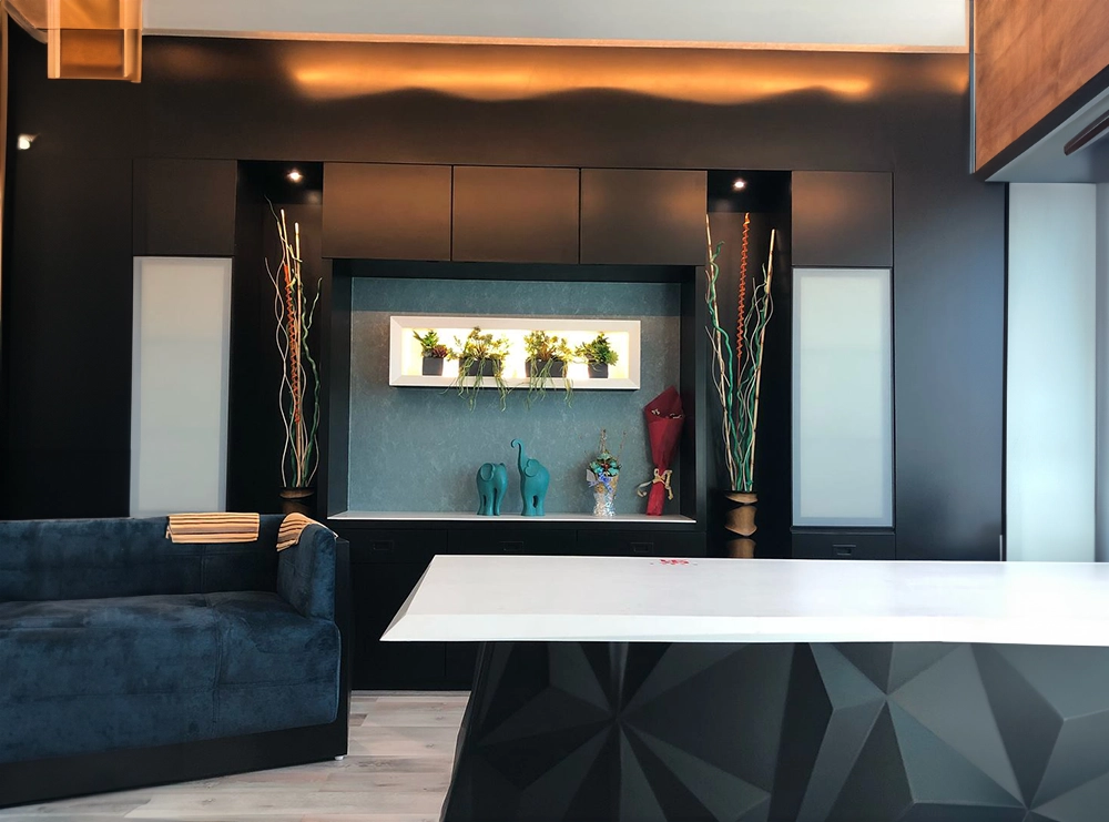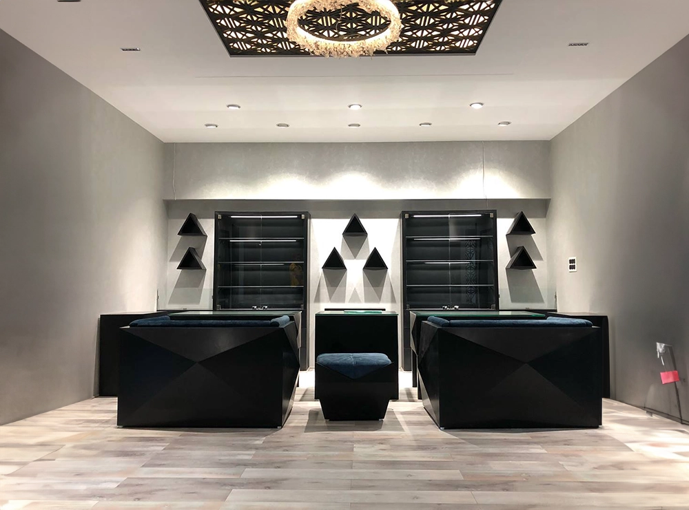 The Peshwa Jewelry shop combines elegance with sophistication. Luxurious materials and refined finishes create a glamorous environment, while well-placed lighting highlights the beauty of the jewelry displays. The layout is designed for a seamless shopping experience, with stylish showcases and comfortable areas for customer engagement, ensuring both a captivating and functional space.