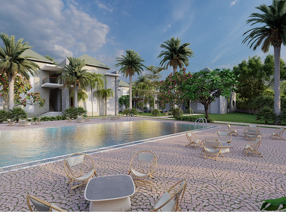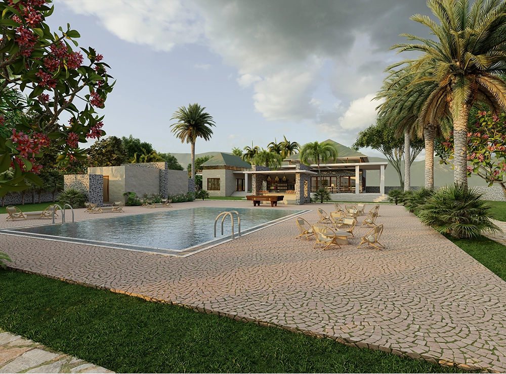 22 Deluxe Rooms each with a View of the Mountains and 2 Premium Suites with a Plunge Pool in the back yard with a scenic view to the mountains, Swimming Pool With an Open Bar, Restaurant and the Open Lawn Party Zone.