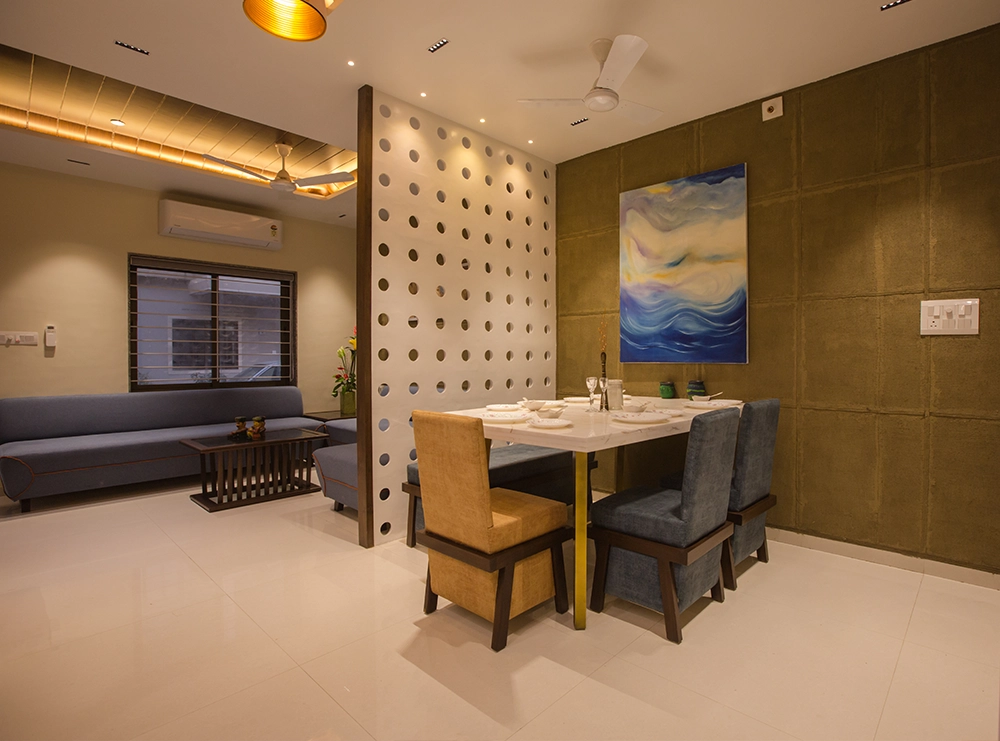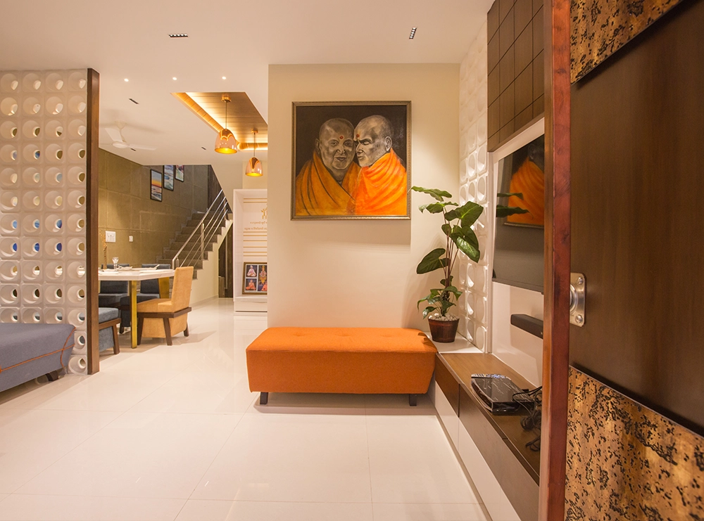 The interior design of Vraj Home Shaligram Greens combines modern elegance with a serene atmosphere. The design features refined furnishings, stylish décor, and a thoughtfully planned layout. The space is crafted to offer comfort and sophistication, creating a tranquil and inviting home environment.